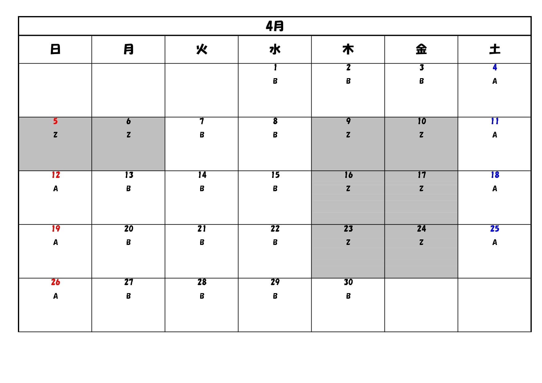 3月,4月の日程表はこちらになります。